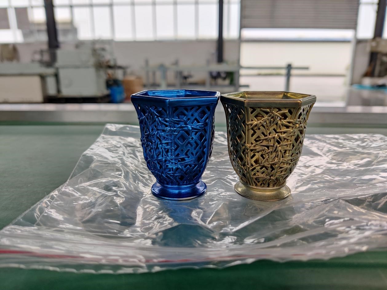 產(chǎn)品特征:以純鈦為材料進(jìn)行鏤空夾層設(shè)計(jì),在突顯美觀的同時(shí)體現(xiàn)了增材制造的技術(shù)優(yōu)勢(shì),健康、隔熱、保溫、輕盈是它的特點(diǎn),再賦予鈦金屬特有的表面著色工藝使它更具魅力。
