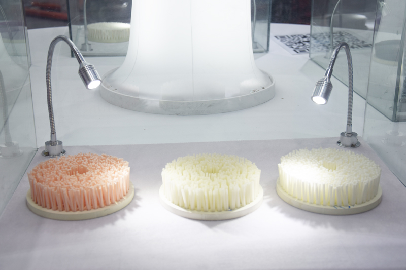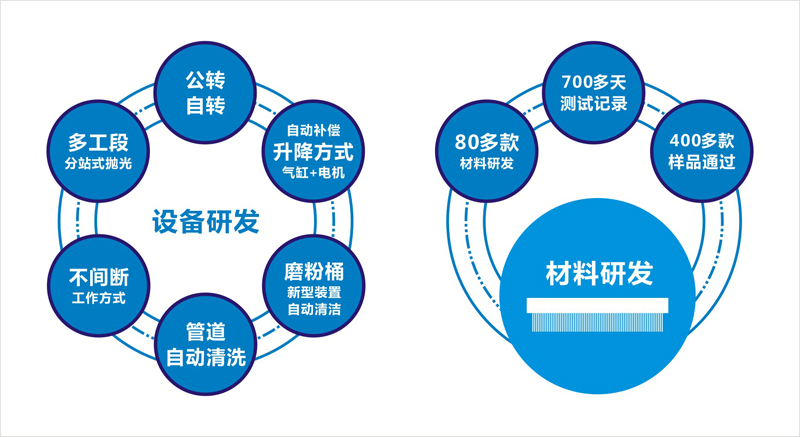 經(jīng)過80多款材料研發(fā)及700多天的測試,產(chǎn)品是現(xiàn)有普通材料下絲量的1.5倍,使用壽命增多3倍以上,最大化提升拋光效果,縮短拋光時(shí)間,減少人工成本的優(yōu)秀成果,成為全場新亮點(diǎn)。